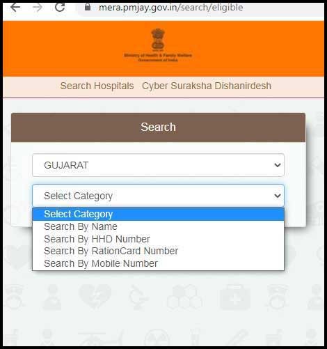 આયુષ્માન ભારત યોજનામાં જેનાથી તમારું નામ શોધવા માંગતા હોય તે પસંદ કરો.