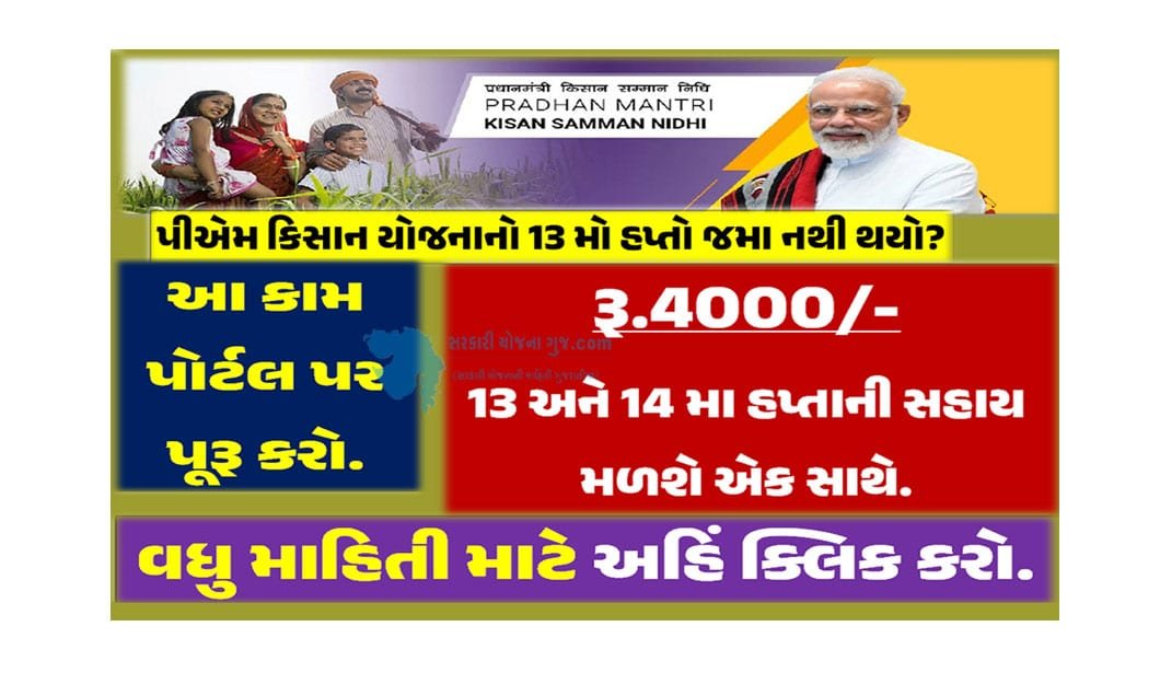 મિત્રો, જો તમારો પીએમ કિસાનનો 13 મા હપ્તાની સહાય હજી નથી આવી, તો તમારે ચિંતા કરવાની જરૂર નથી. કારણ કે, આ આર્ટિકલ માત્ર તમારા માટે છે. મિત્રો આ યોજના હેઠળ PM Kisan e-KYC બાકી હોય તો પૂર્ણ કરવાનું રહેશે. વાસ્તવમાં, કેટલાક પાત્રતા ન ધરાવતા લોકોએ આ યોજનામાં ઓંનલાઈન રજીસ્ટ્રેશન પણ કરાવ્યું હતું. જેના કારણે સરકારને કરોડો રૂપિયાનું નુકસાન થયું હતું. આ કારણોસર, સરકારે પીએમ કિસાન યોજનાના લાભો યોગ્ય લોકો સુધી પહોંચવા માટે પીએમ ઈ-કેવાયસી ફરજિયાત બનાવ્યું છે. જેમને 13 મા હપ્તા સુધી પણ e-KYC કરાવ્યું નથી એમને સહાય મળી નથી, જેથી આવા ખેડૂતોને આગામી 14 મા હપ્તા સાથે રૂપિયા 4000/- એક સાથે મળશે.